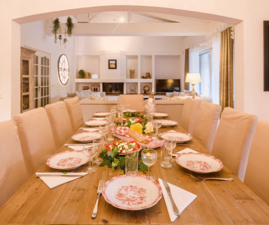 La grande table peut facilement accueillir 12 personnes pour un dîner entre amis ou en famille.