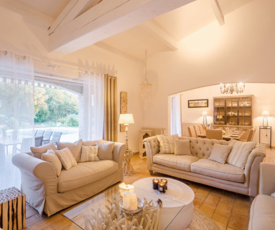 Le salon chic et confortable de la Villa Siena est un lieu où l'atmosphère est vivante tout au long de la journée.